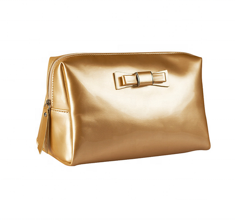 Neceser de piel metálica para mujer, bolsa de maquillaje reutilizable con cremallera